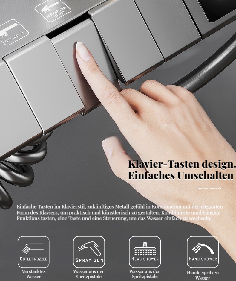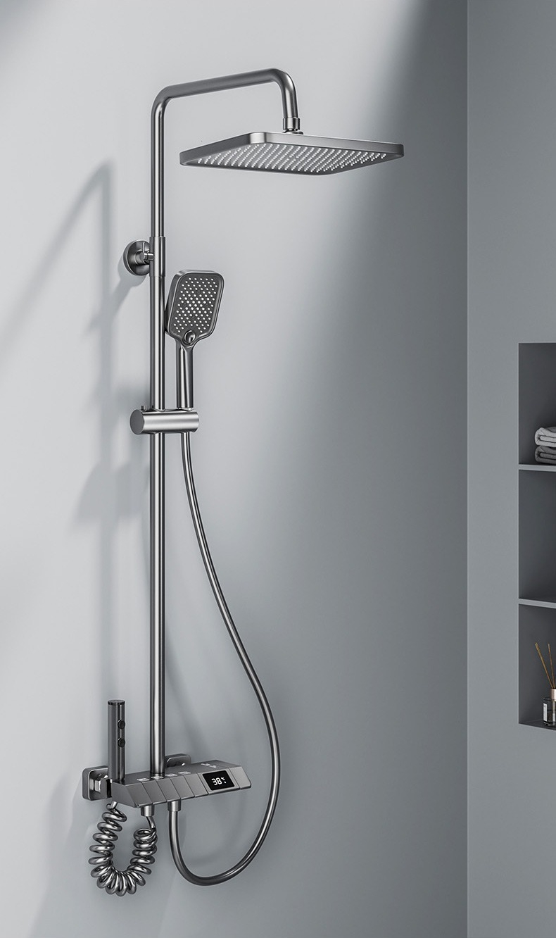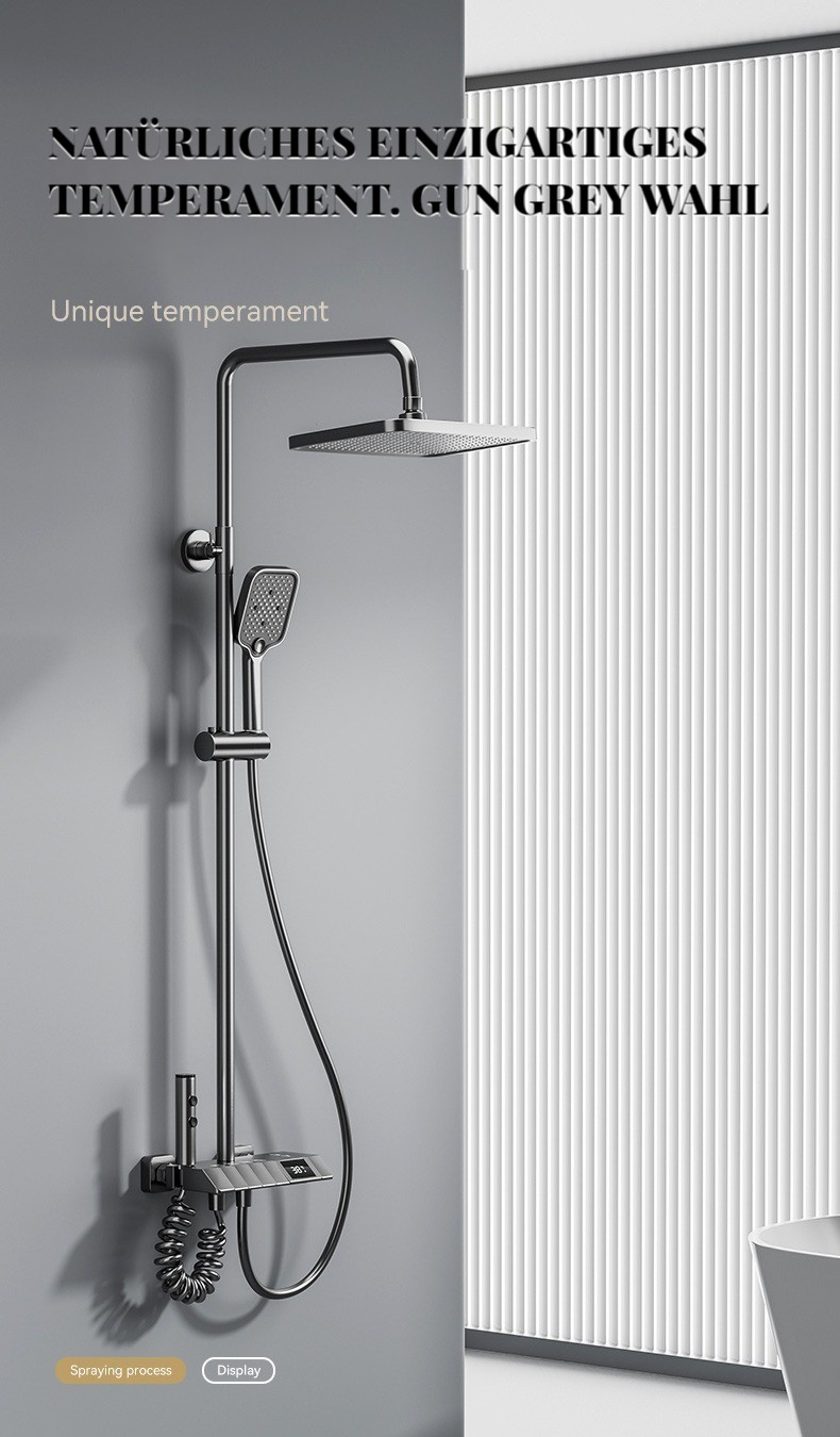 Wrigley gunmetal grau Klavier Knopf Dusche thermostatische Duschkopf digital Bad Bad voll Kupfer Booster Bad Set