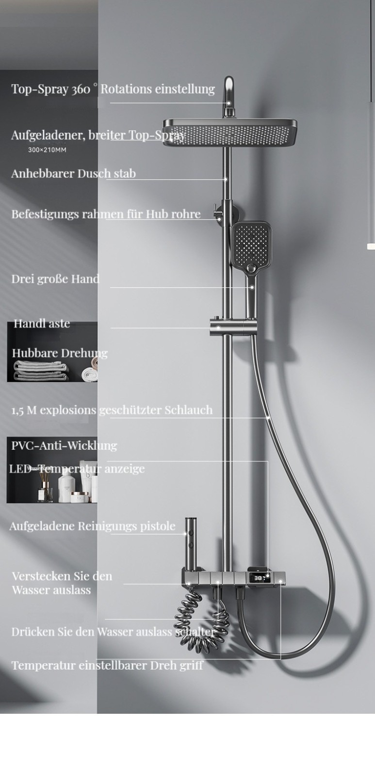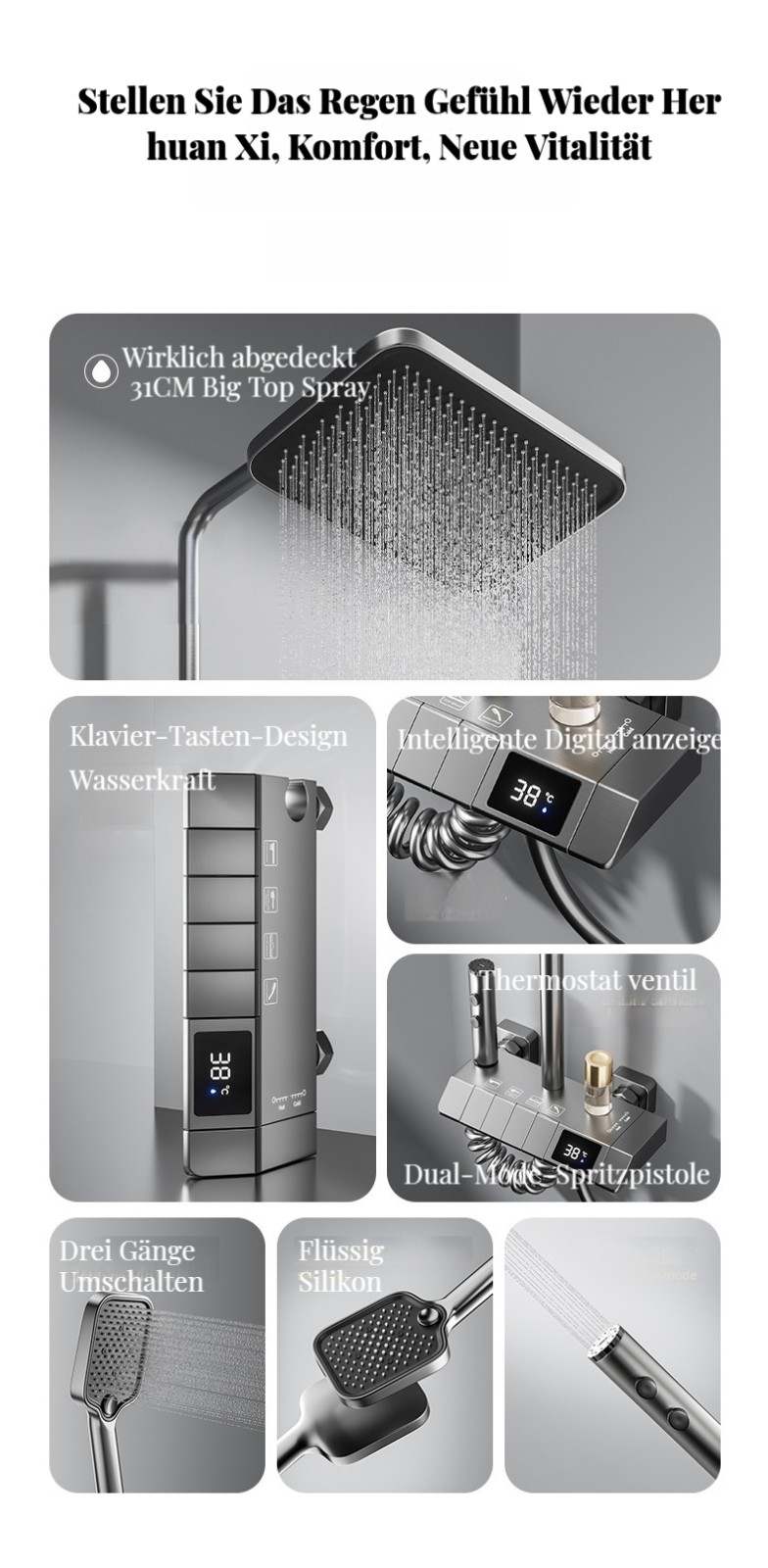Duschthermostat digital Ganzkupfer-Düsenverstärker-Set